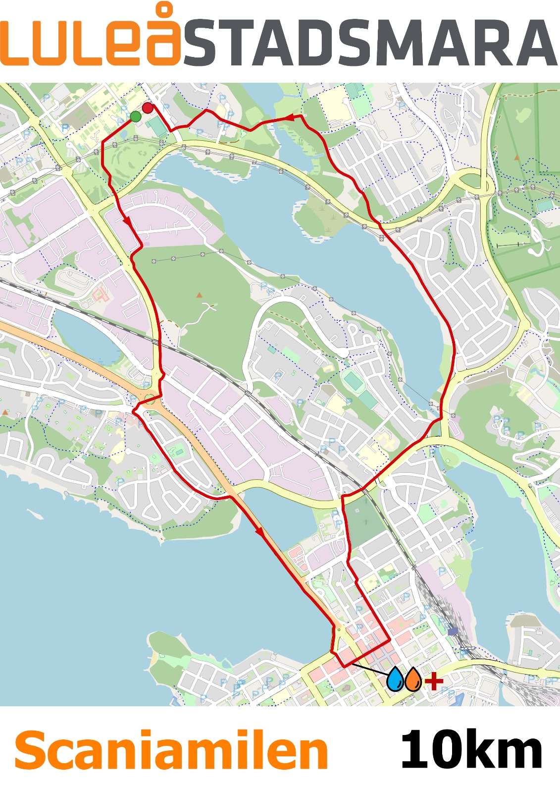 Flack asfaltsbana där första halvan går runt Porsön, Björsbyn och därefter in mot Luleå City genom publiktäta Storgatan.